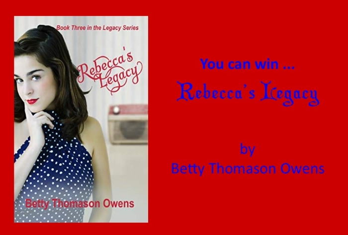 You can win “Rebecca’s Legacy” by my friend Betty Thomason Owens as a door prize if you attend. We have 1 print copy and 4 ebooks!
